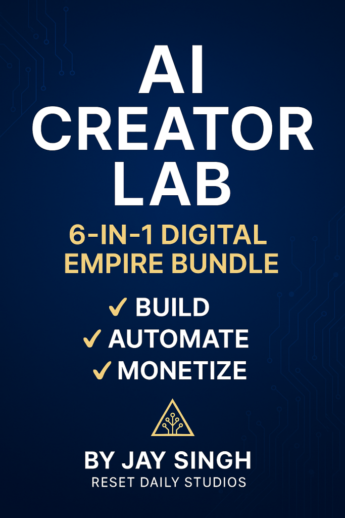 Step inside the AI Creator Lab, your all-in-one playbook to turn creativity into cash flow. This guide walks you through the entire process of building, branding, and monetizing digital products using AI — from eBooks and templates to online courses and full digital systems.