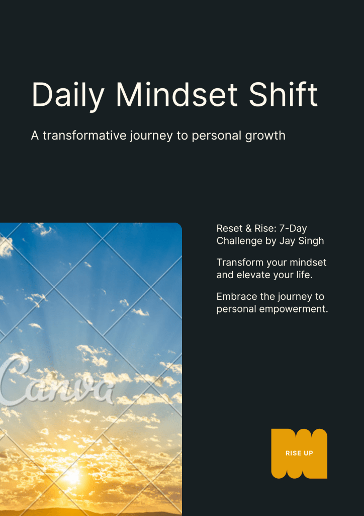 7 Day Reset and Rise Challenge is a transformational mindset coaching program designed to help you break free from limiting habits, reset your daily mindset, and rise stronger each day. Through guided daily challenges, motivational prompts, and reflective journaling exercises, this program empowers you to cultivate positive habits, increase self-awareness, and ignite lasting personal growth — all in just one week.